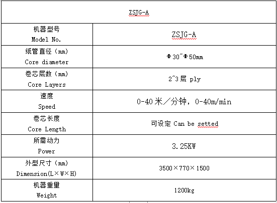 ZSJG-A型自動(dòng)卷芯機(jī)是采用電磁鐵配(pèi)合杠杆原理技術,實現同步自動切斷,具有高速、節能、收卷結(jié)實等(děng)特(tè)點,是生產紙芯的首選設備。